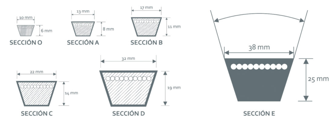 Perfil con curvatura, asegurando un total contacto con la polea.
